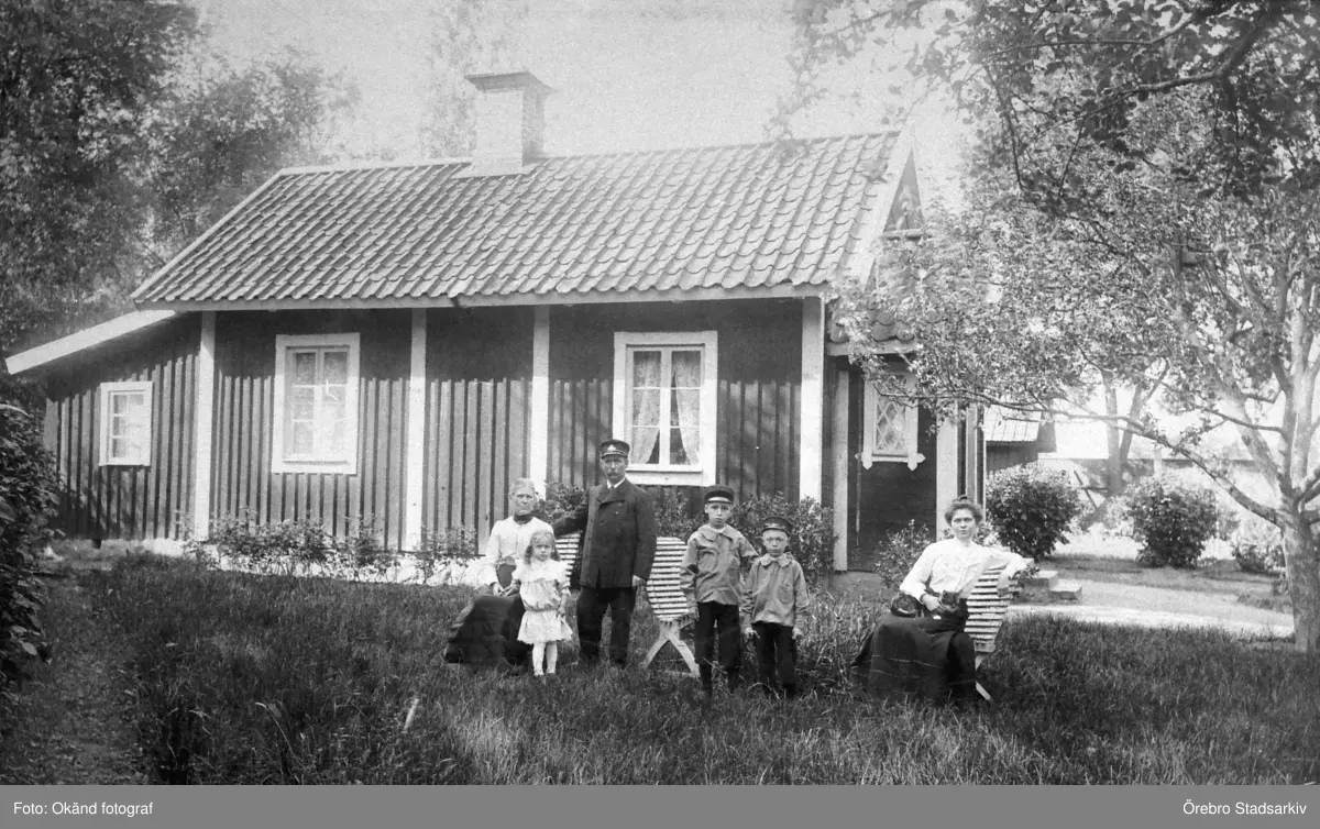 Familj framför banvaktstugan i Adolfsberg, ca 1905