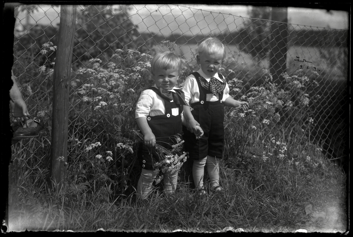 Två små pojkar i hängselbyxor