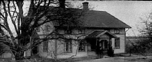 ETT STÖRRE HUS MED LIGGANDE PANEL OCH SNICKARGLÄDJE PÅ VERANDAN