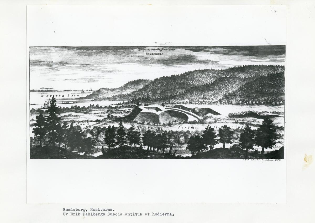 Teckning av landskapet, Rumlaborg, Husqvarna.