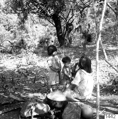 Guaymíkvinna med småbarn under kokning i det fria. Se Wassén: Illustrerad Rapport etc. Årstrycket 1948, fig. 9 d, p. 157.