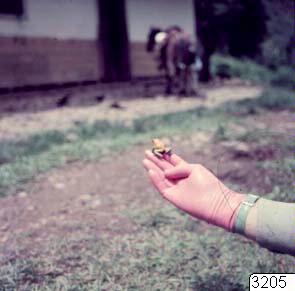 Kjell von Sneidern visar en Dendrobates (lövgroda) som chocóindianerna använder för giftegenskapernas skull som producent av hjärtverkande pilgift.
