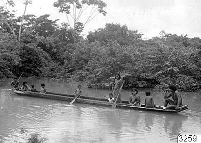 Gästande waunanindianer lämnar "hamnen" vid Noanamá, Chocó.
