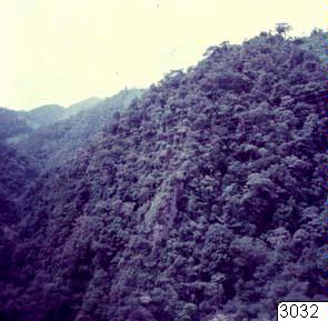 Typiskt bergs- och ravinlandskap vid Ventanas, sett från landsvägen Buenaventura-Cali.