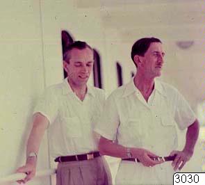 Nils M. Holmer ombord på m/s Brasil (Johnson Line) med fartygets befälhavare Ridderstad.