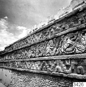 Beskrivning: Mur med fris i Tula, Hidalgo, Mexico, den s.k "ormmuren" med fresker.