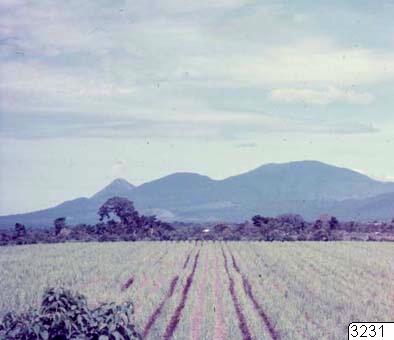 Vulkanen Izalco sedd från vägen från San Salvador mot Santa Ana. Izalco hade 1955 utbrott med rökpuffar var 5:e minut.