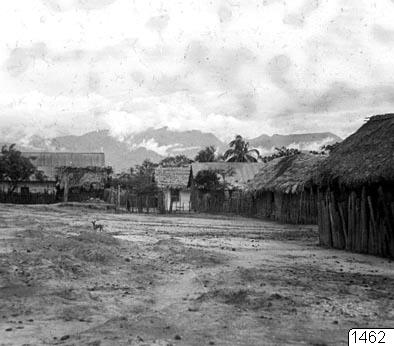 Byn Dibulla vid norra foten av Sierra Nevada de Santa Marta. I bakgrunden