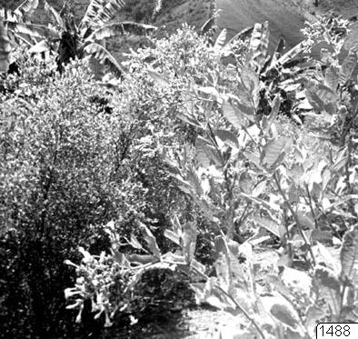 Odling av cocabusken och tobaksplantor i kággababyn San Miguel.