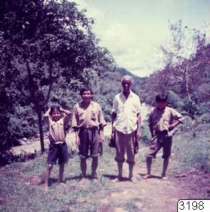 Gammal neger och tre emperá-chocóindianer i La Unión, Caldas.