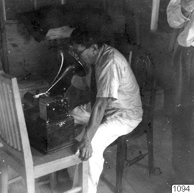 Ailigandi under intalning av vaxrullar hos oss i Narganá. Det är museets gamla apparat, som åter fick göra tjänst.