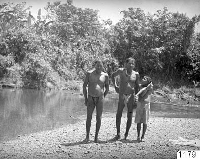 Rast för ett bad på en grusplaya. No(a)namá- Chocó-indianerna på bilden äro bröderna