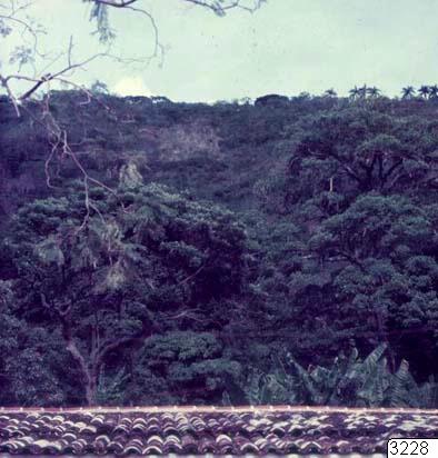 Utsikt över urskogsterräng från toppen av Tazumal, Chalchuapa.
