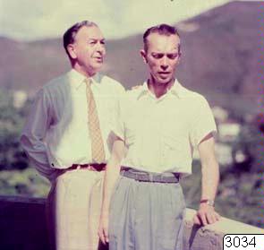 Rederiinspektören Malte Svensson för Johnson Line och Nils M. Holmer (t.h) på Hotel Menendez' balkong i Cali.