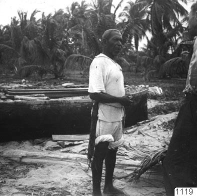förhyrd på Chocoanita från Turbo under vår resa till R. Caimán Nuevo från Cartagena. Mannen var från Turbo, och hade varit i Cartagena för att leta efter den bortsprungne mördaren av hans son. Han hoppades finna mördaren så småningom. På bilden i samtal med prof. Holmér. Fotot taget i juni.