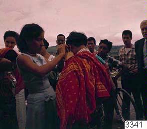 Cunaindianskan Irene Colman hjälper en annan cunakvinna med toaletten, Turrialba.