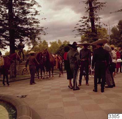 Charros med sina hästar utanför Castillo de Chapultepec, Mexico.