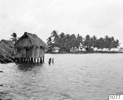Strandmotiv från cunabyn Narganá, med avträde byggt vid stranden.