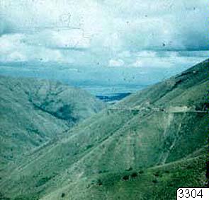 Beskrivning: Utsikt över Cancadalen från höjderna på landsvägen väster om Cali.