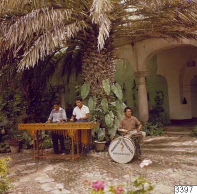 Marimba-orkester i trädgården till lokala muséet i Mitla, Oaxaca.