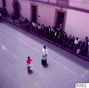 Första majtåg i Popayán. Präst och korkosse i tågets början.