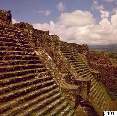 Teopanzolco-pyramiden 500 m från järnvägsstationen i Cuernavaca, Mexico.