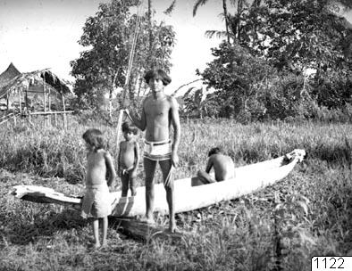 arbetar). Den stående unge indianen Angel Pastor Hingimía har material till pilskaft i händerna.