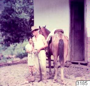 Peonen (dräng) Rafael Giraldo Valencia och hans kvinna vid en häst i La Unión, Caldas.