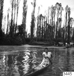 Lokal invånare, indianska i kanot. Xochimilco, Mexico.
