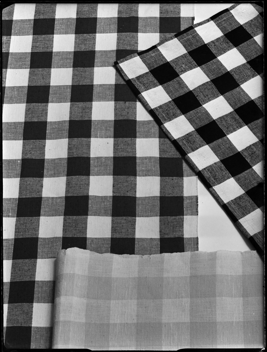 BRICKA PÅ RUTIG DUK, TRE RUTIGA TYGER, VIT GARDIN, STOL PÅ RUTIGT TYG