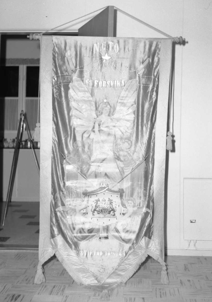 Invigning av NTO-lokalen i Forsvik den 11 november 1958. NTOs fana.