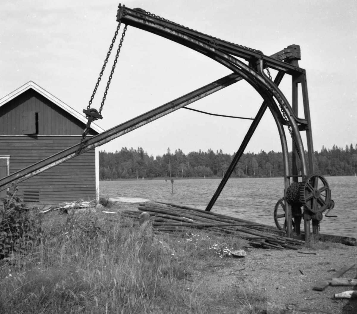 Manuell lyftkran (1889) vid utloppet mot Bottensjön. Med kranen lastades gods, råvaror och material både på oh av båtar för sjöfrakt.