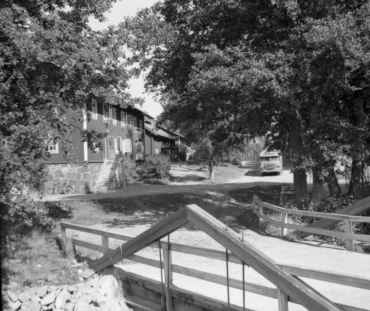 Bruksvägen. Arbetarbostäderna 1:an, 2:an (Rödakvarn) och 3:an till vänster och brukskontoret skymtar till höger.
