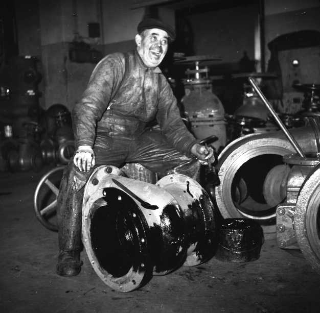 Arbete i verkstaden på Forsviks bruk. "H.j. Ring" blackar en ventil.