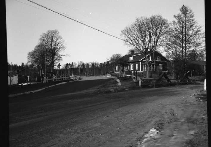 Vägfoto vid vägkorsningen upp till bruksvägen. Arbetarbostaden kallas för "Galtabolet" (1871).