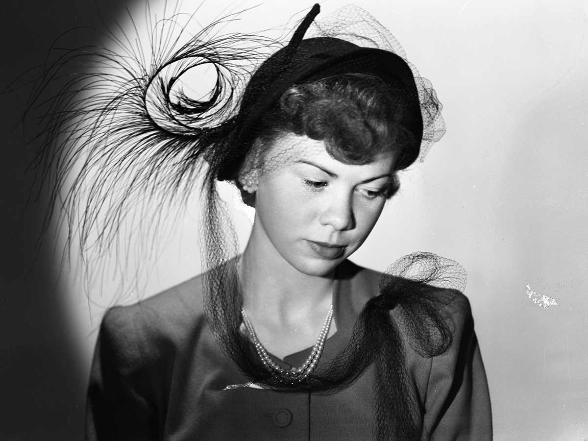 Reklamfotografering för Bergströms Modeaffär, hattar. Modellen är troligen modisten Märta Ljung (gift Antonsson).