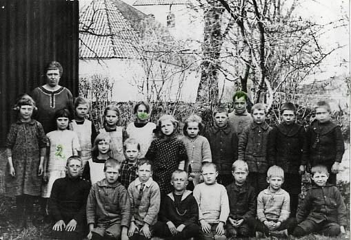 Skolfoto. Första klass i Dagsås skola. Lärarinnan heter Maria (Ulrika Eleonora) Selvén, kallad Mia. På första raden sitter Ingemund Bengtsson som 3:a från vänster. Han föddes 1919 i Veddige och blev en framstående socialdemokratisk politiker. Under åren 1979–1988 var han talman för riksdagen. Bengtsson satt även i FN: s generalförsamling 1963 till 1967.