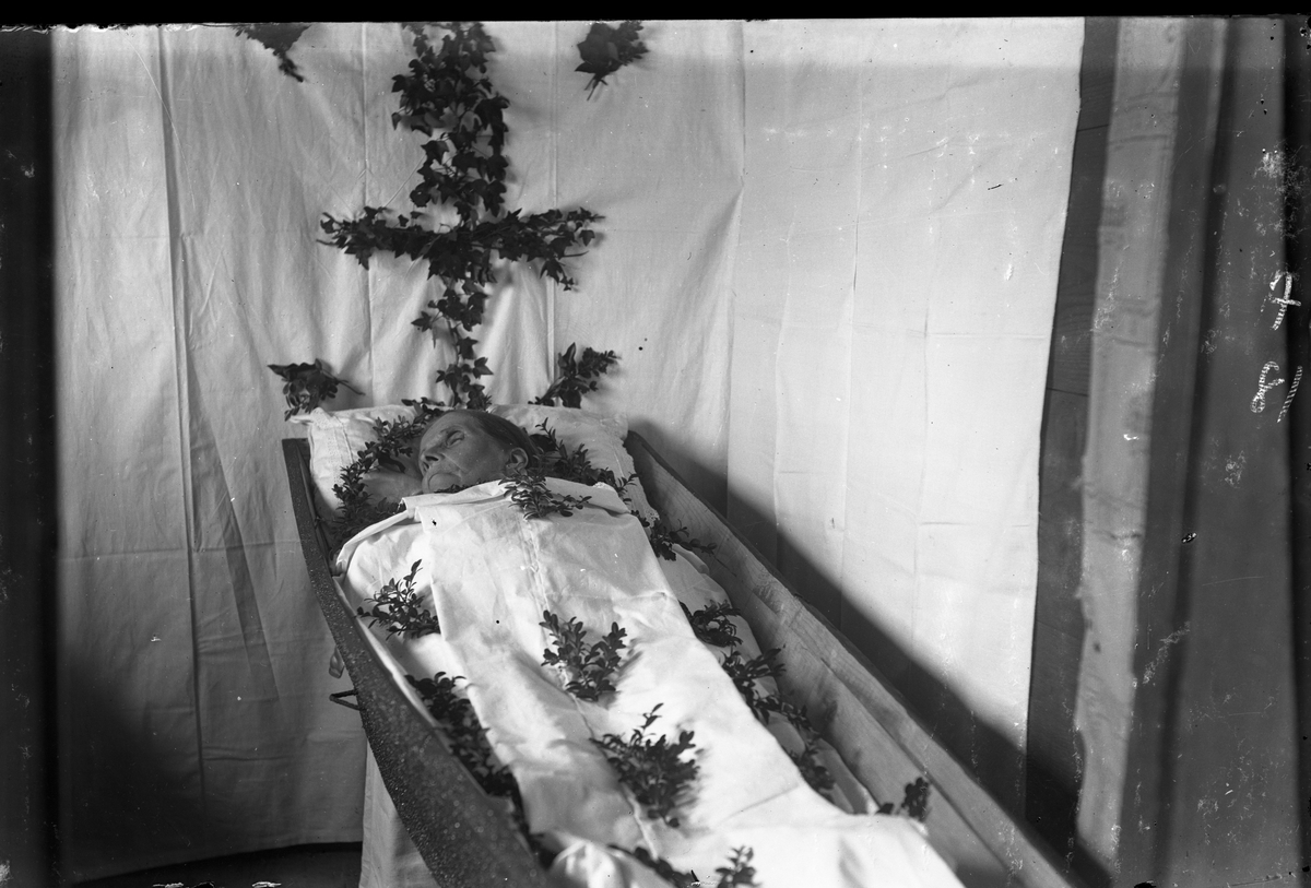 Ända sedan hednisk tid, och fram tills det i Sverige förbjöds 1686, höll man likvaka/likvakt natten till begravningen av en död (gravöl hölls däremot efter begravningen för att hedra och minnas den döde ). En anledning till att seden då förbjöds i kyrkolagen var att vakan ofta antog karaktären av fest med sprit och dans, vilket inte gick ihop med den Lutherska moralen. Seden övergick till att man gick för att "se liket", vilket förmodligen är fallet vid denna fotografering, utan en regelrätt likvaka. Detta lever ännu kvar inom katolicismen där prominenta personer kan läggas på "lit de parade", i betydelsen paradsäng; en säng som sörjande kan paradera förbi och ta farväl av den avlidna före begravningen.