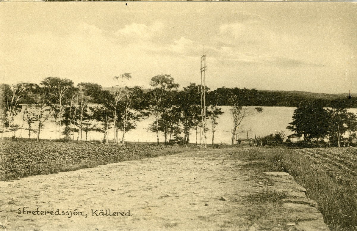 Vykort "Streteredssjön. Kållered." 1910-tal. Vägen till Tulebosjön från Stretered. Till bad och tvättsköljning. Nuvarande (år 2020) är det badplats.