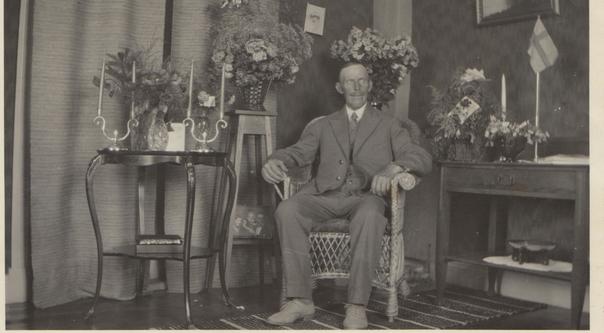 Uppvaktning i hemmet för Adolf Johansson som fyller 60 år, Labacka 1:2 "Lund". Född 1868 i Hajom (Mark), död 1935 i Kållered.