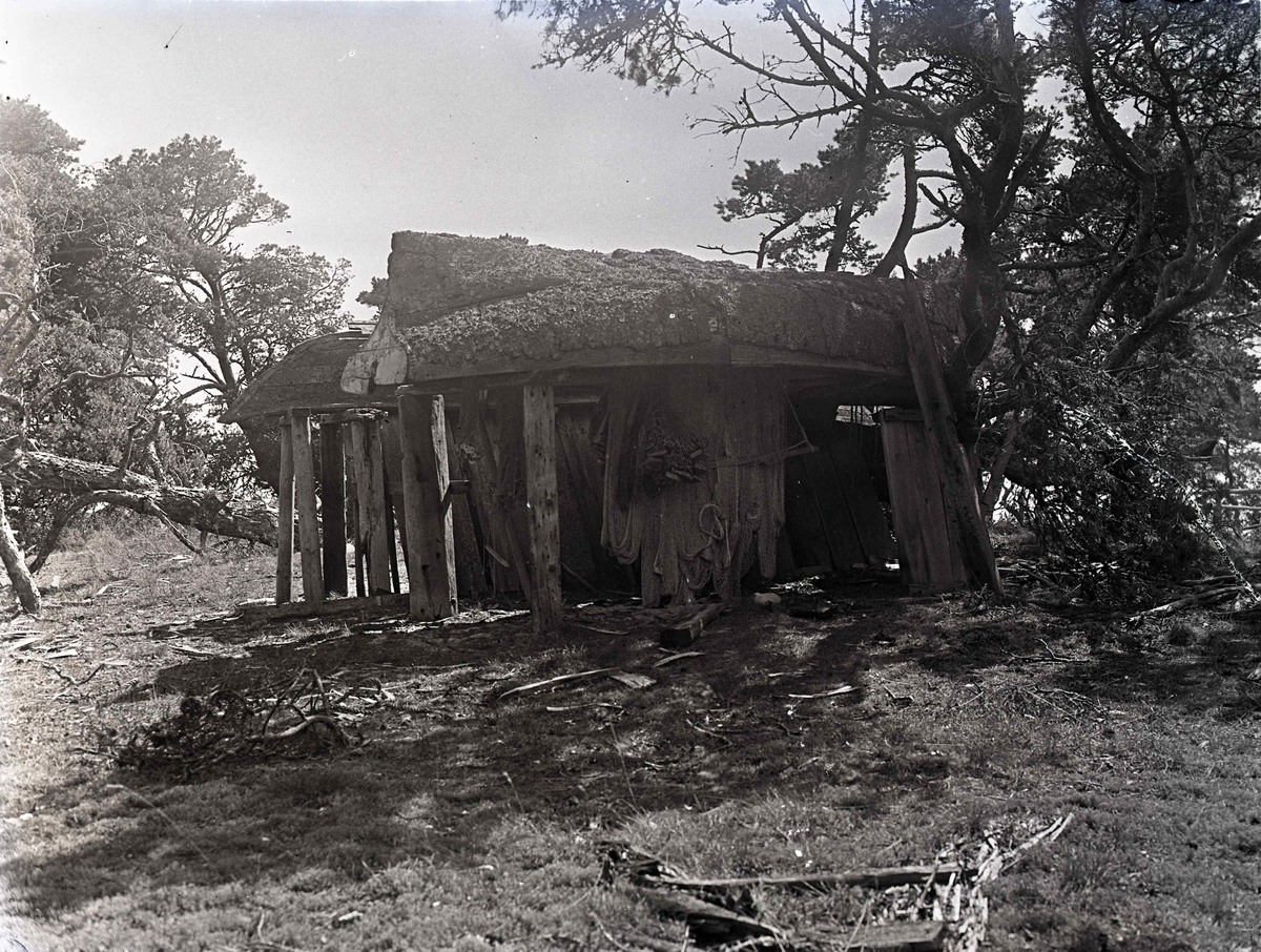 Skjul med nätförvaring.