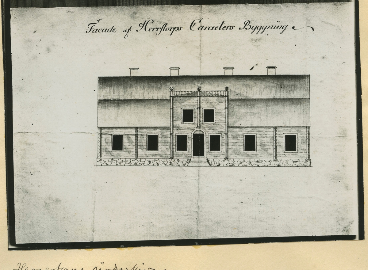 Herrestorps gårdarkiv. Förslag till ändring av den äldre huvudbyggnaden av 1758.