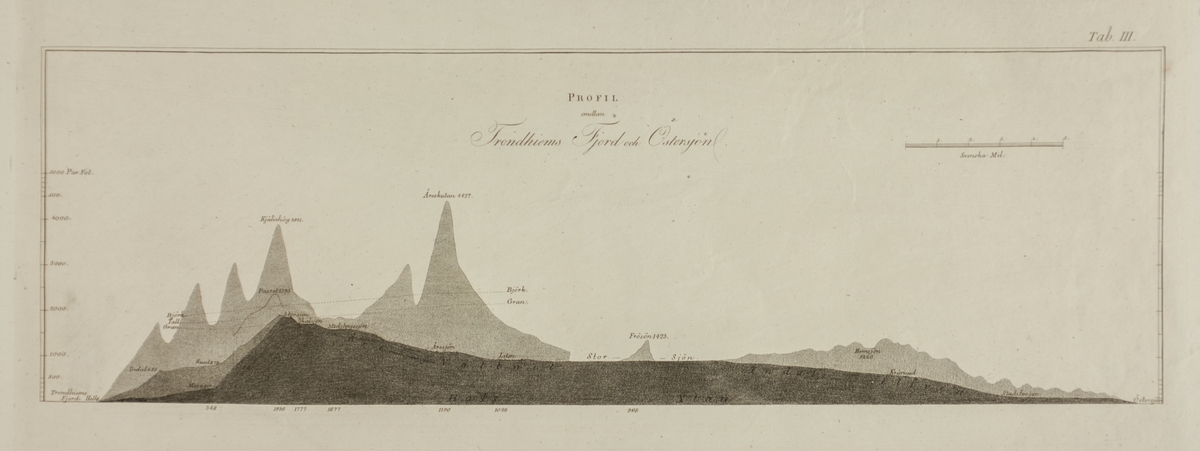 Sjökarta, profil Trondheim till Östersjön. Ur Johannes van Keulen bok "Gedrukt tot Amsterdam by Ioannes van Keulen, Boek Zee-kaart Verkooper en Graad-boogh maker aande Oost Zyde vande Nieuwebrug inde Gekroonde Lootsman"