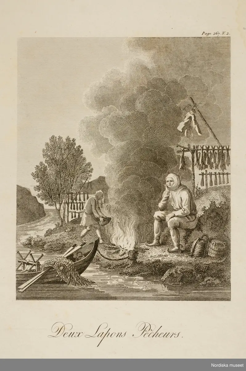 Grafiskt blad. "Deux Lapons Pecheurs." "Page 267. V. 2." Två samiska fiskare. L.A. 5