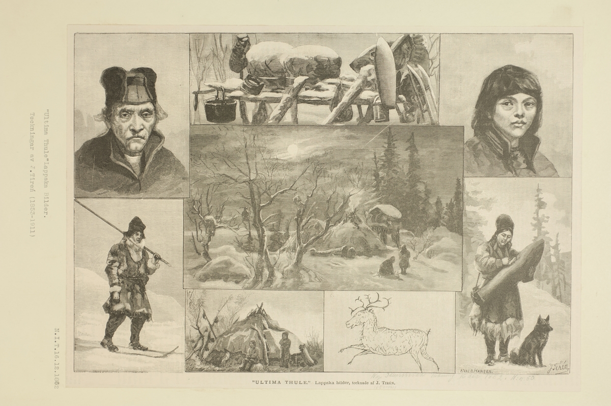 Grafiskt tryck. "Ultima Thule", collage av bilder med samiska motiv. Tecknade af Johan Tirén (1853-1911).