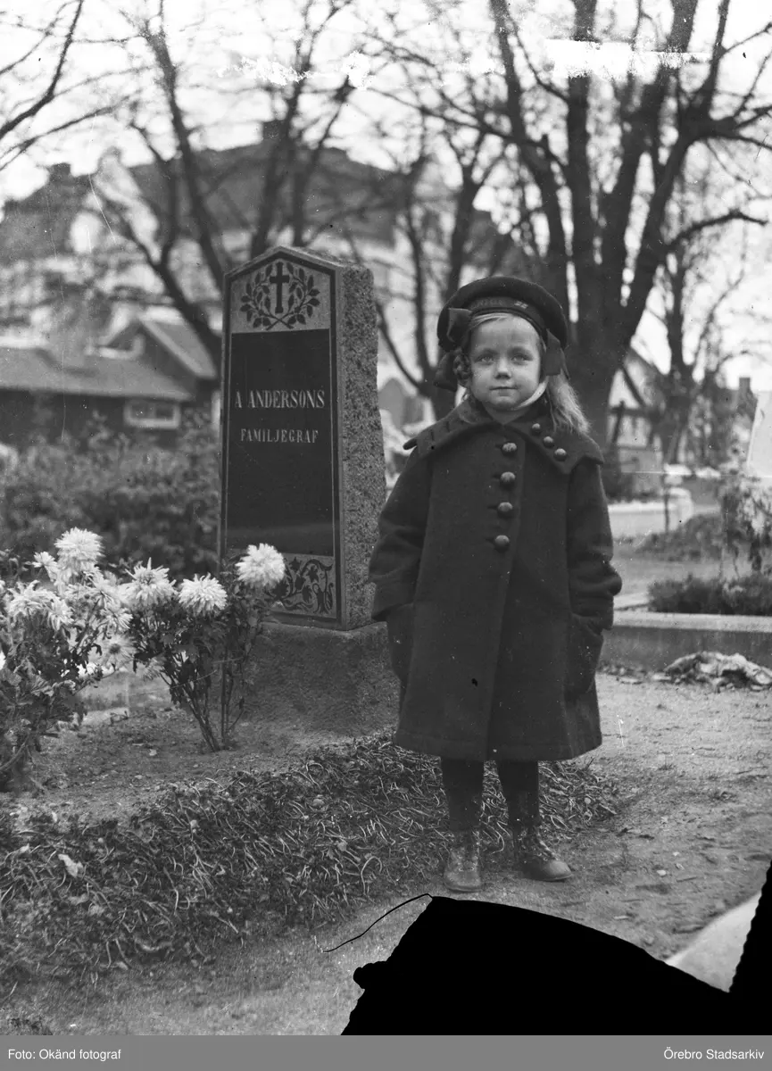 Flicka vid familjegrav på Södra kyrkogården, 1920-tal