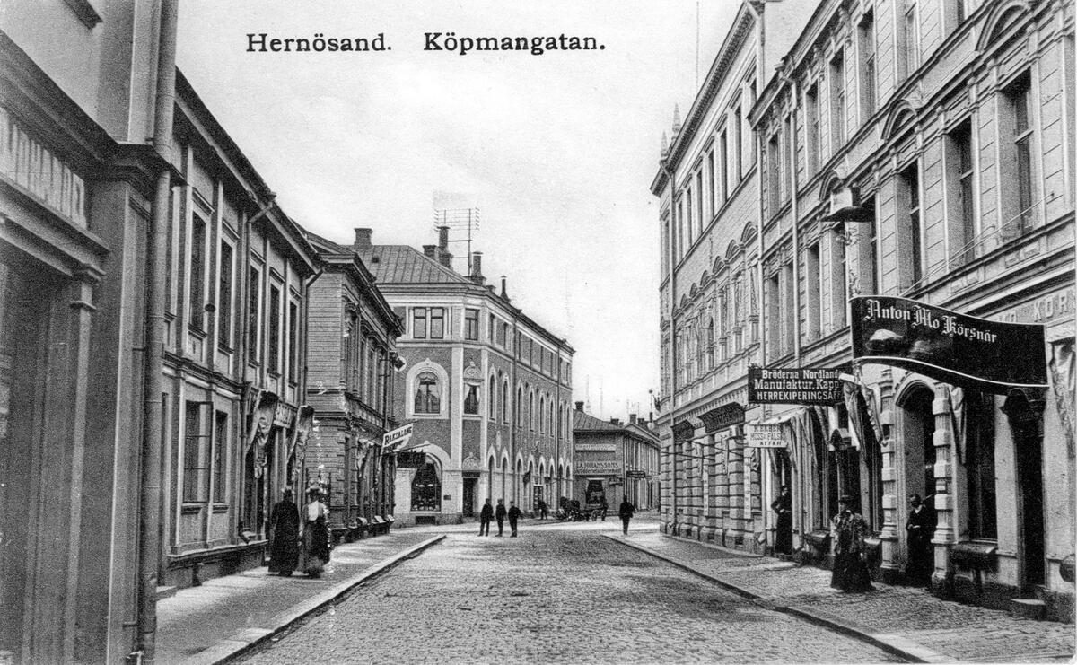Köpmangatan Härnösand. Bild mot N. Vykort.