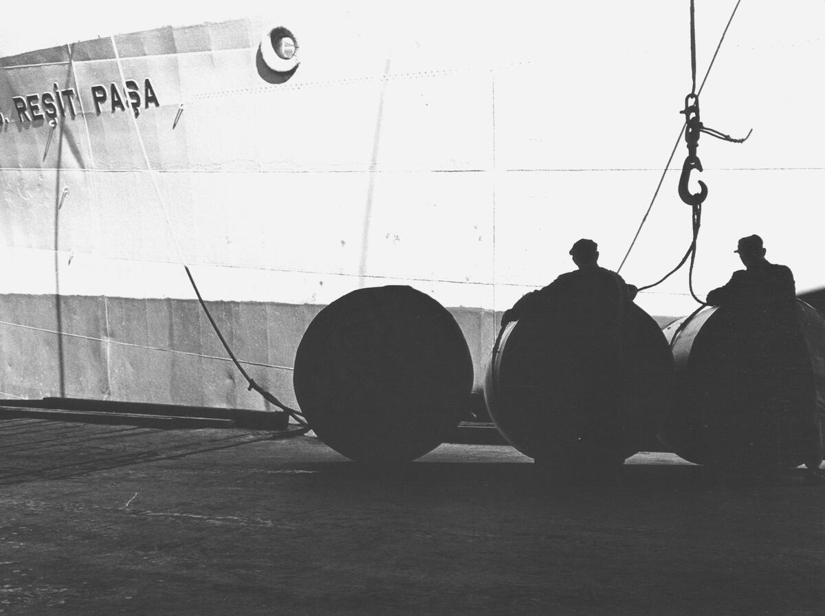 Titel: Utlastning till fartyg. Personal från stuveribolaget.