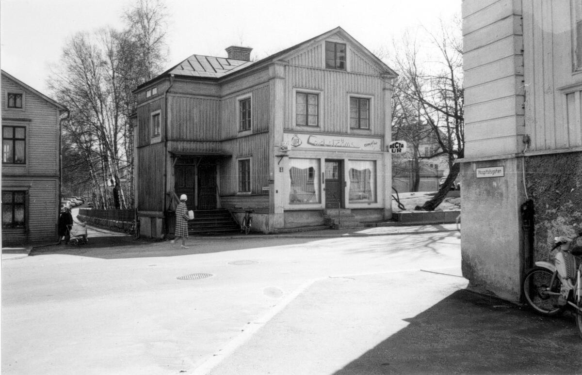 "Sista styvern", gamla tullkrogen i hörnet Storgatan - Hospitalsgatan.