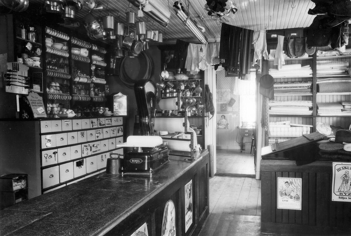 Affärsinteriör från omkring 1925-35. fotograferad av Åströms bokhandel i Härnösands vykortsfotograf.
